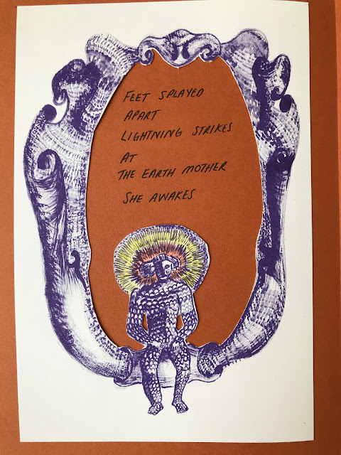 During a recent visit to Christchurch I was lucky enough to find the most amazing notepad designed by Lyttelton ceramic artist Nichola Shanley and sold at Ng Space. Each pad (right-hand image above) has a unique hand-painted cover and I seized upon this one of a fantastical beast. There are eight gloriously baroque drawings in the pad and fifteen of each design. It couldn't have been more perfect to illustrate a short poem of Jack's about awakening and transformation. It is called "Malinche Dreams" and it was inspired by the painting The Dream of Malinche by Antonio Ruiz (1939).